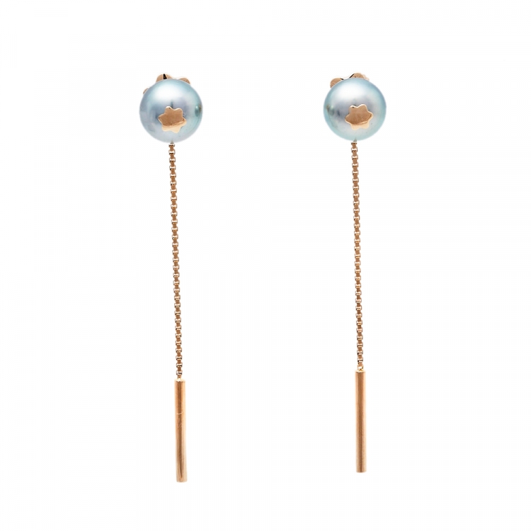 Pre Owned أقراط مون بلان بوهيم مونغاردين ذهب وردي عيار 18 و لؤلؤ صناعي رصاصي