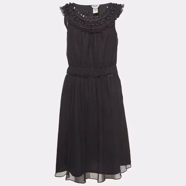 Pre Owned فستان موسكينو شيب أند شيك حرير أسود معدني مزين رقبة ميدي مقاس وسط - ميديوم