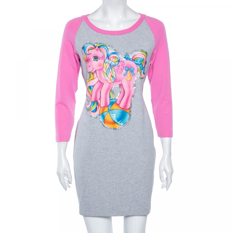 Pre Owned فستان تي شيرت موسكينو كوتور ماي ليتل بوني قطن وردي ورصاصي مطبوع مقاس كبير - لارج