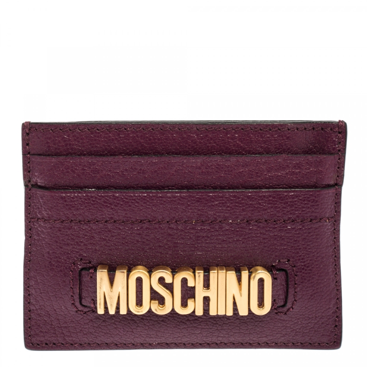 مملوكة مسبقًا محفظة بطاقات موسكينو جلد بنفسجي بالشعار