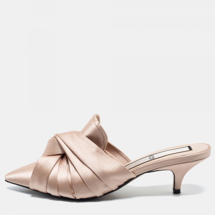 Nº21 Cream Satin Knotted Slide Mules Size 38