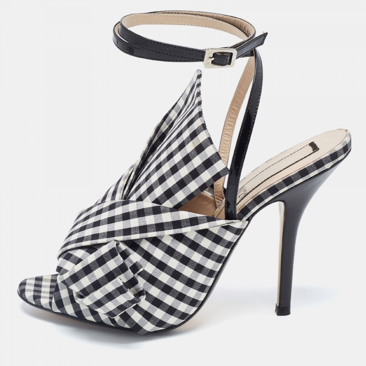 Pre Owned N21 Black/White Fabric Gingham Ankle Wrap Peep Toe Sandals Size 38.5
