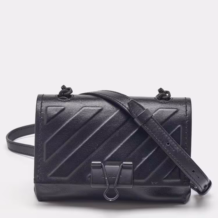 حقيبة كتف أوف وايت مشبك ملف جلدي أسود بغطاء