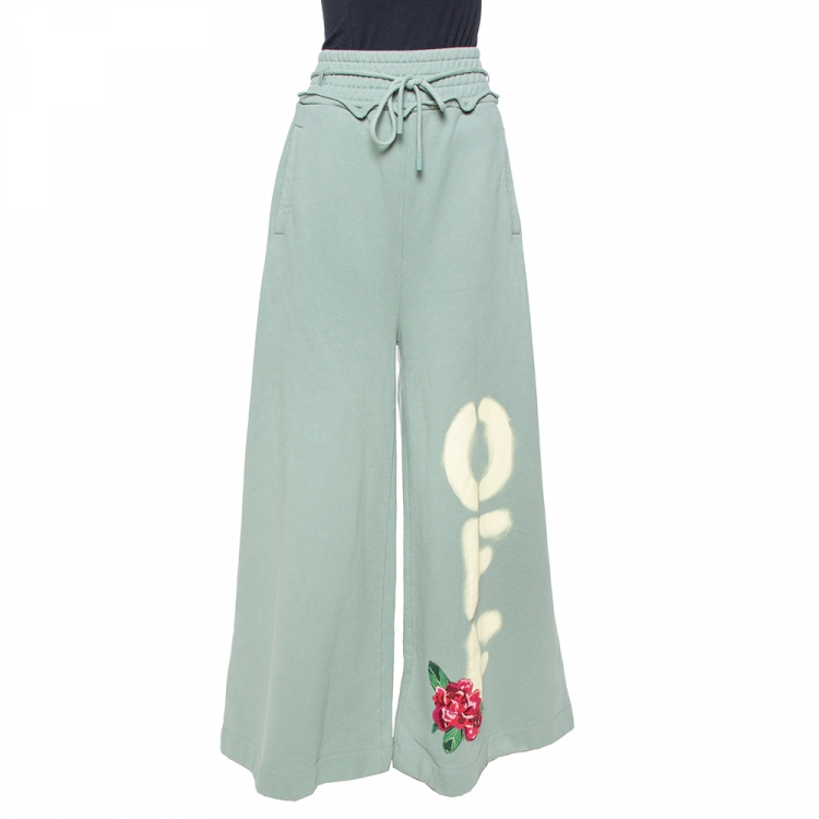 بنطلون رياضي أوف وايت ساق عريضة قطن مطبوع أخضر سيغ L