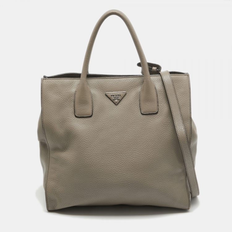 Pre Owned Prada Beige Vitello Daino Leather Shopper Tote