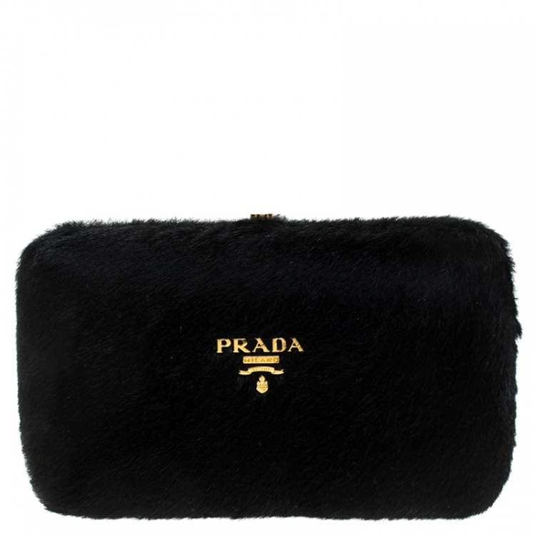 حقيبة كلتش برادا فراء سوداء