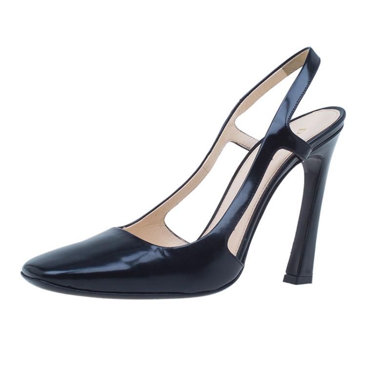 Pre Owned صندل برادا جلد أسود مقدمة مربعة حزام للكاحل مقاس 37.5