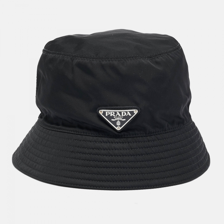 Prada Black Logo Applique Re-Nylon Bucket Hat L