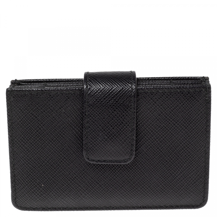 Pre Owned محفظة بطاقات برادا أكورديون جلد سافيانو أسود