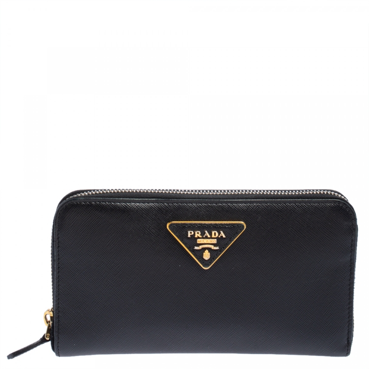 مملوكة مسبقًا محفظة برادا جلد سافيانو لوكس أسود بسحاب محيط