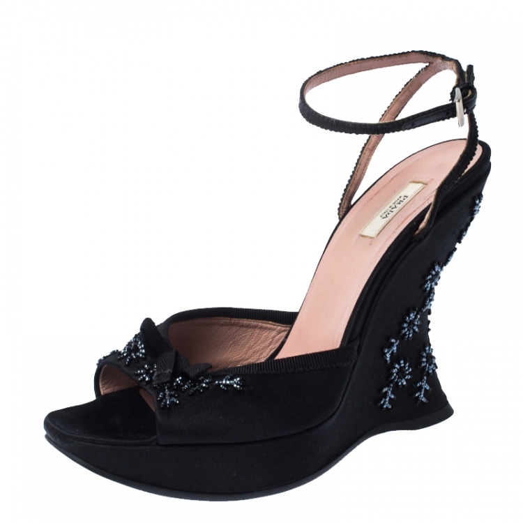 Pre Owned صندل برادا مزخرف و بنعل سميك و بسير كاحل ساتان أسود مقاس 37.5
