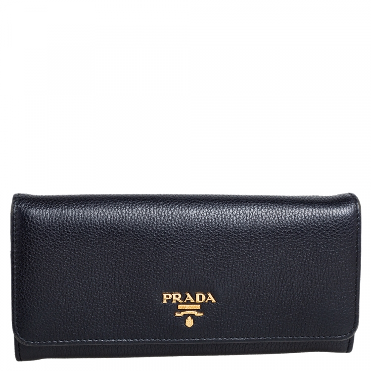 Pre Owned محفظة برادا كونتينينتال جلد فيتيلو فينيكس أسود ذات قلاب