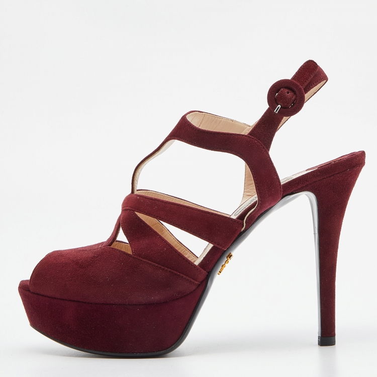 مملوكة مسبقًا صندل برادا نعل سميك فتحة كعب مقدمة مفتوحة سويدي أسود مقاس 39
