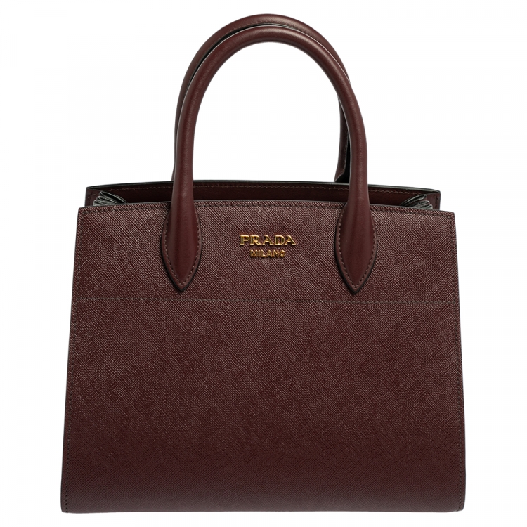 Pre Owned حقيبة يد توتس برادا بيبليوتيك جلد سافيانو عنابي/ رصاصي