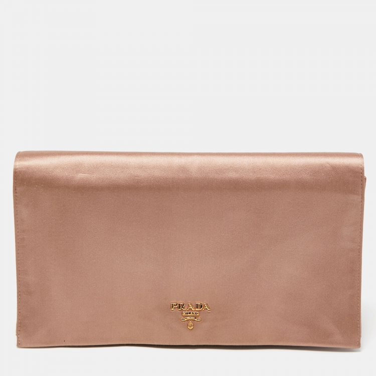 Pre Owned Prada Dusty Pink Satin Flap Clutch