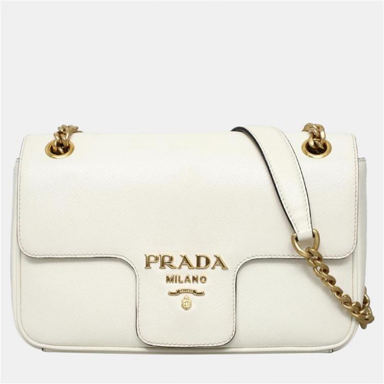 Pre Owned حقيبة كتف برادا سلسلة سافايانو بيضاء مع رفرف