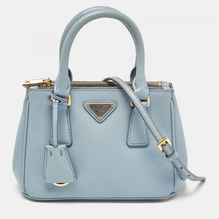 Prada Light Blue Saffiano Lux Leather Micro Double Zip Tote