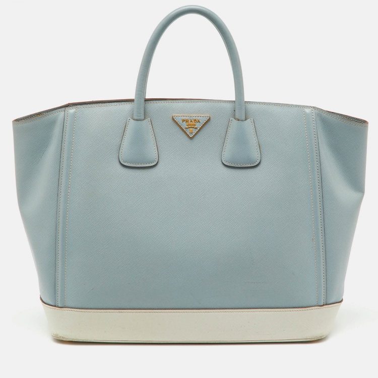 مملوكة مسبقًا حقيبة تسوق كبيرة من برادا جلد سافيانو أزرق فاتح/أبيض