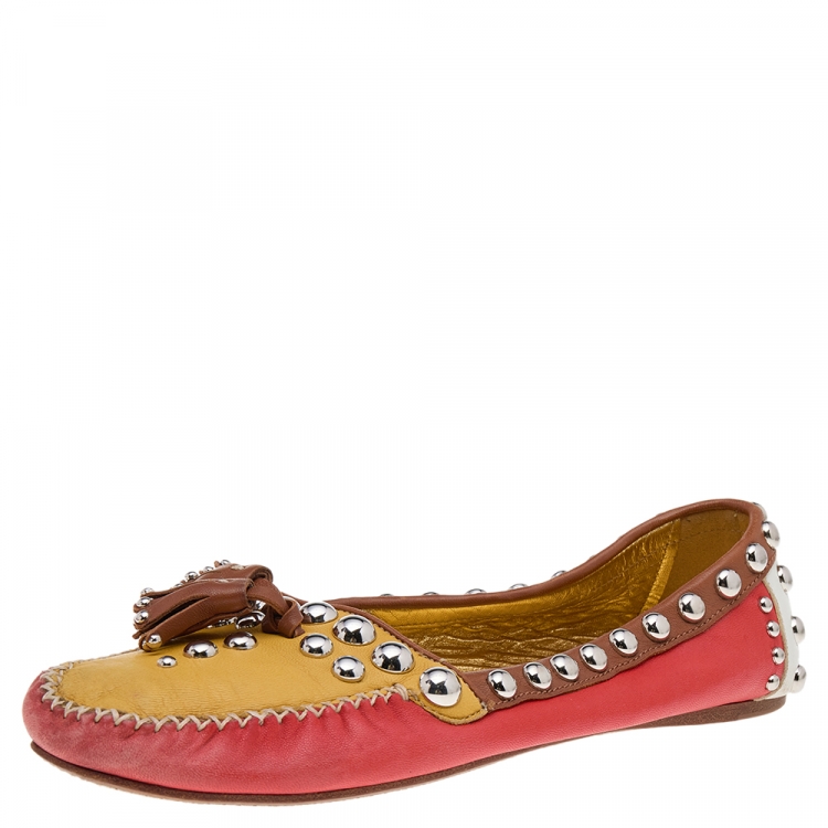 حذاء لوفرز برادا سليب أون جلد مزخرف متعدد الألوان مقاس 38.5