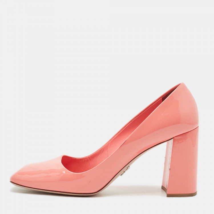 حذاء كعب عالي برادا كعب عريض جلد لامع زهري مقاس 39.5