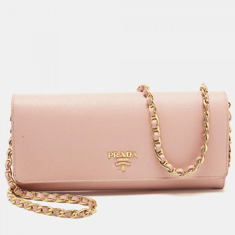 Prada Pink Saffiano Leather Wallet On Chain