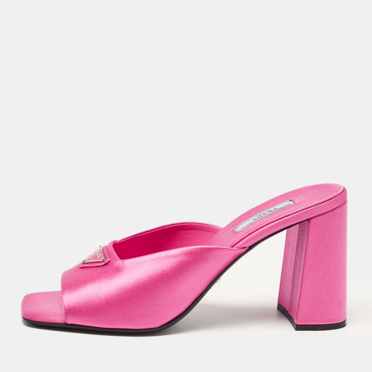 Prada Pink Satin Block Heel Slide Sandals Size 40