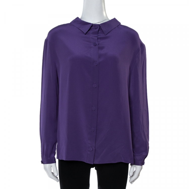 بلوزة برادا حرير بنفسكي أكمام طويلة أزرار خلفية مقاس متوسط - ميديوم