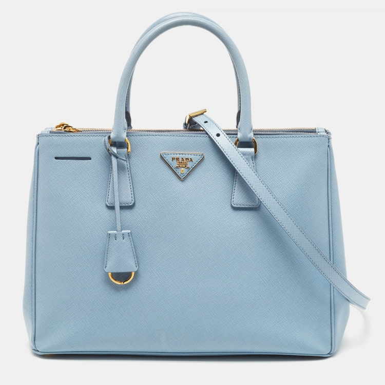 Prada Sky Blue Saffiano Lux Leather Medium Double Zip Tote