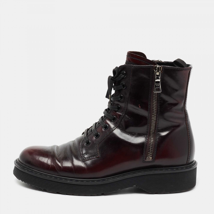 حذاء بوت كاحل برادا سبورت جلد لامع أسود/عنابي مقاس 37