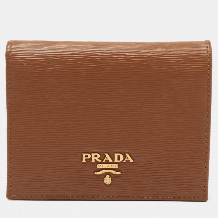 Pre Owned محفظة ثنائية الطي برادا جلد موف بني فاتح