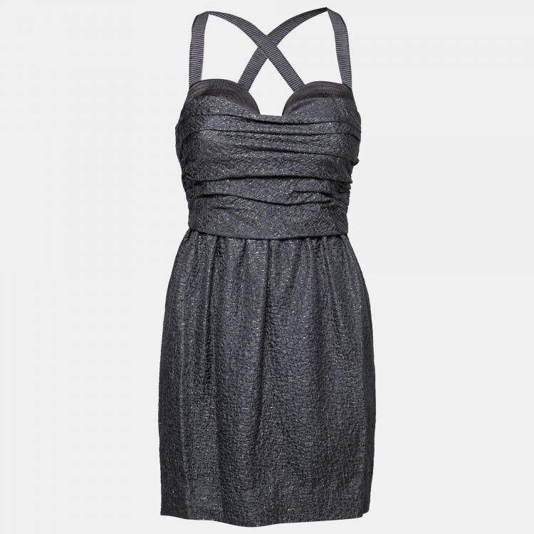 مملوكة مسبقًا فستان برونزا شولر رصاصي سلي لوريكس صوف وحرير بديرابيه S