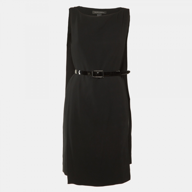 Pre Owned Ralph Lauren Black Crepe Cape Detail Belted Midi Dress M