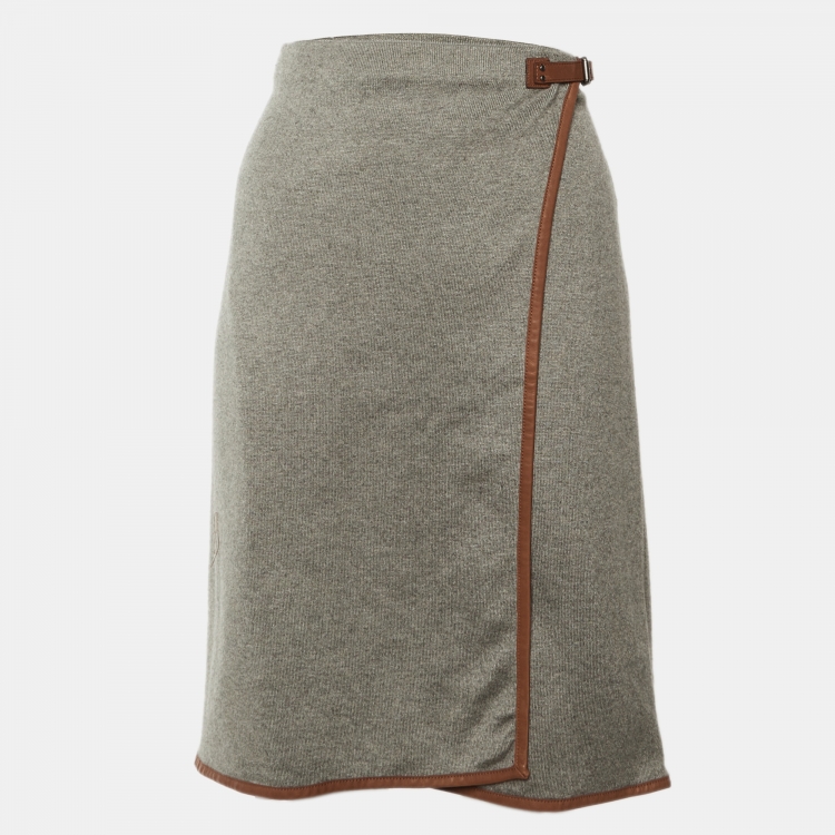 Pre Owned Ralph Lauren Grey Knit & Leather Trim Wrap Skirt M