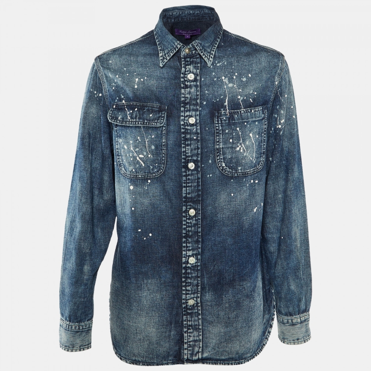 مملوكة مسبقًا قميص رالف لورين دنيم بتفاصيل مرسومة أزرق كحلي مقاس صغير