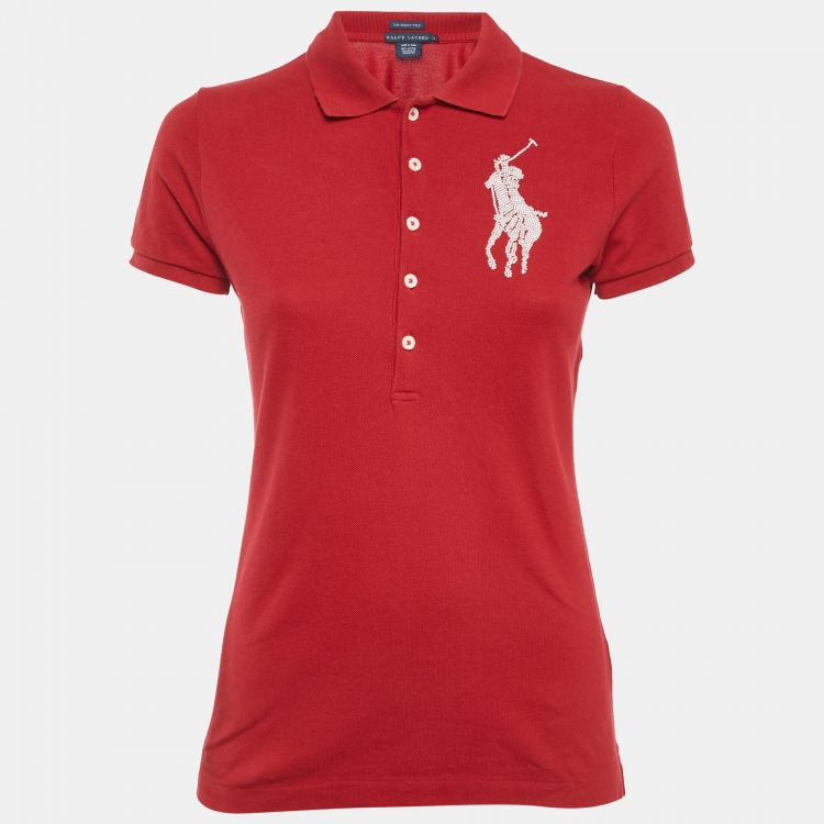 قميص بولو ضيق بتطريز شعار أحمر رالف لورين مقاس صغير