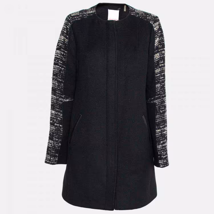 معطف ريبيكا تايلور بوكليه أسود متوسط الطول بسحاب أمامي M