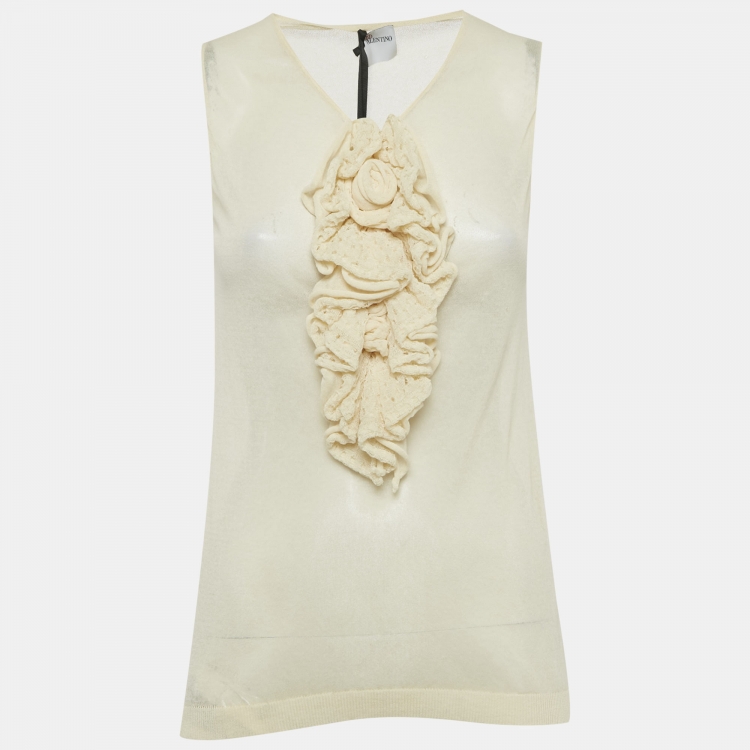 توب رد فالنتينو تريكو بيج بتفاصيل زهور مزخرفة مقاس كبير - لارج