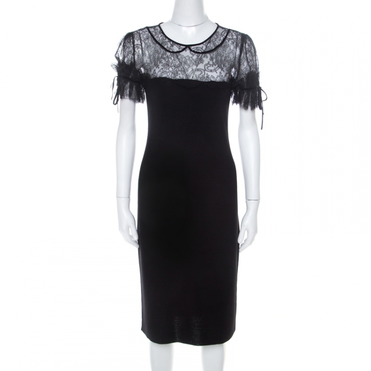 مملوكة مسبقًا فستان ميدي رد فالنتينو صوف جيرسيه أسود دانتيل مورد S