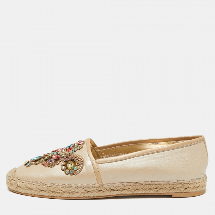 حذاء فلات إسبادريل رينيه كاوفيللا جلد ميتالك بيج قصات مفرغة مزخرف كريستال مقاس 41