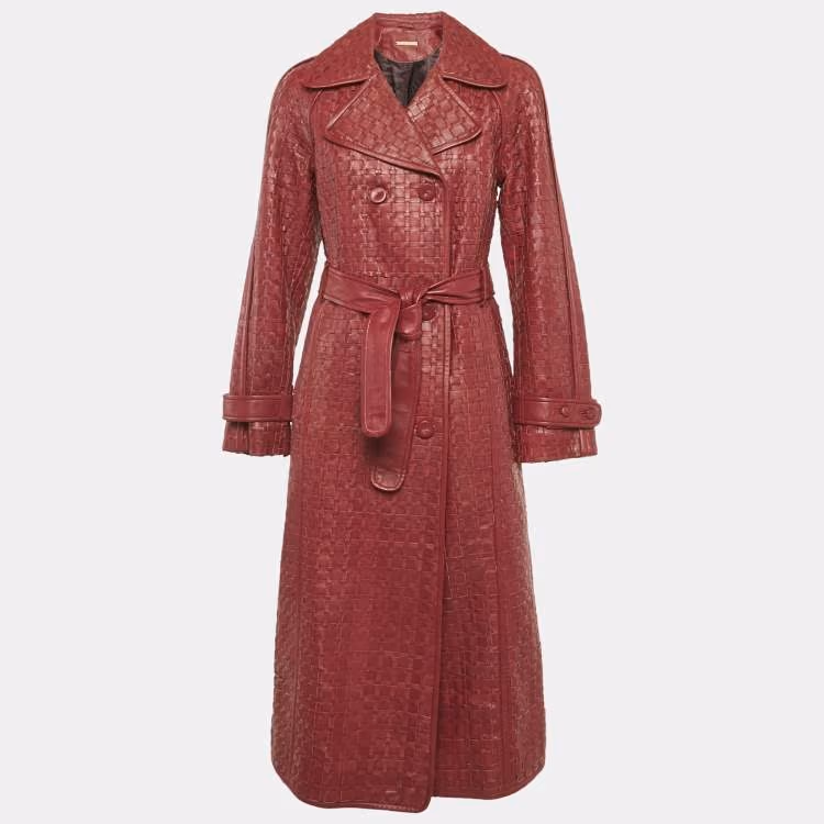 مملوكة مسبقًا معطف ريتشاردز رادكليف جلد طبيعي بورغوندي منسوج يدويًا كادوجان مقاس متوسط