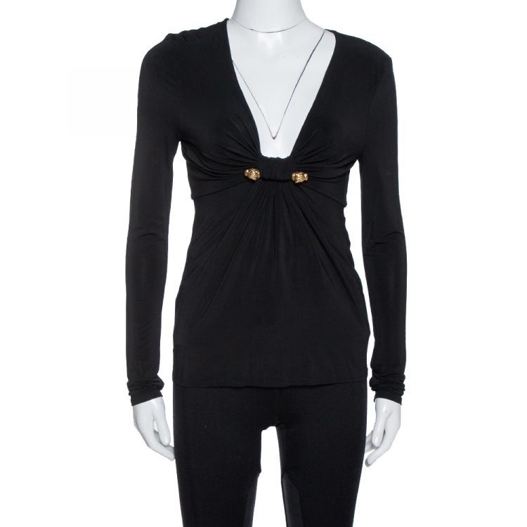 Pre Owned توب روبرتو كافالي تفاصيل بروش مجمع جيرسيه أسود S