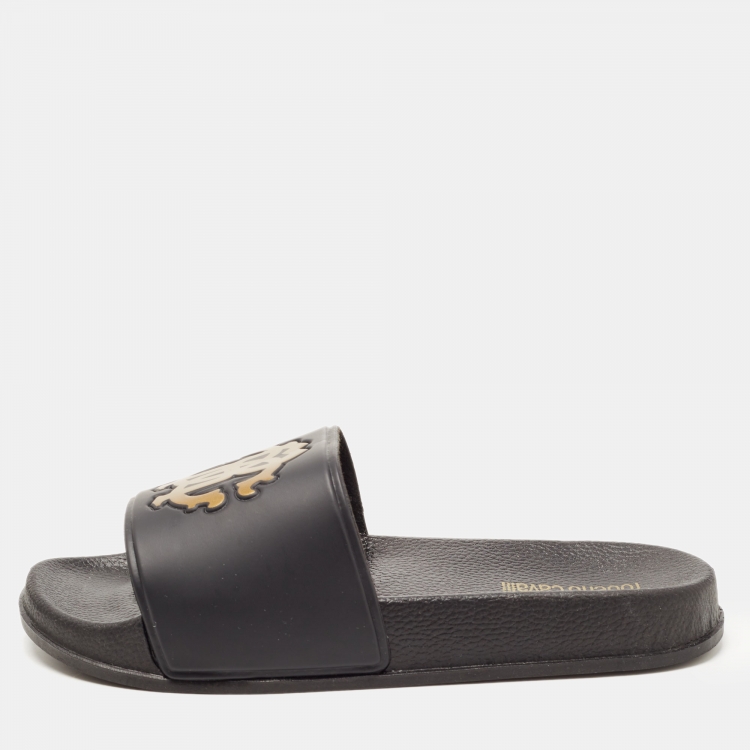 Roberto Cavalli Black Rubber Flat Slides Size 38