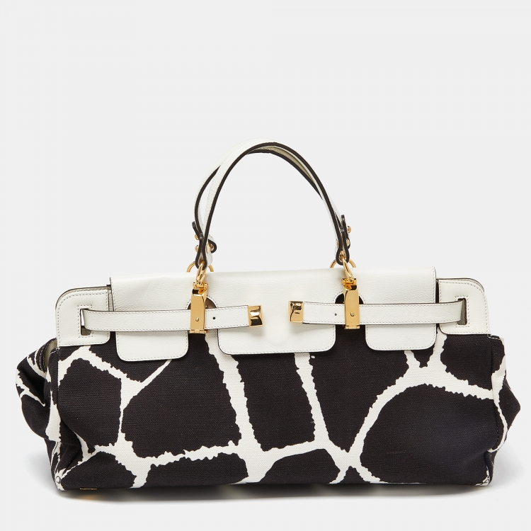 Roberto Cavalli Black/White Printed Canvas and Leather Bag
