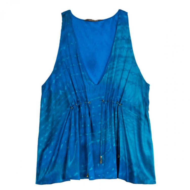 Pre Owned بلوزة روبرتو كافالي حرير أزرق بلا أكمام