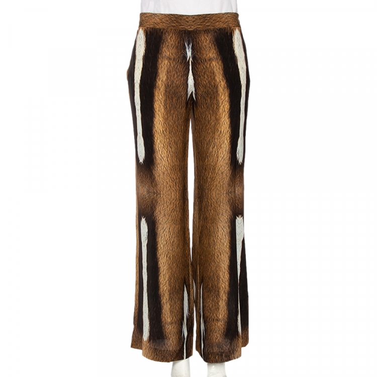 مملوكة مسبقًا بنطلون بالازو روبرتو كافالي حرير طباعة حيوان بني مقاس كبير