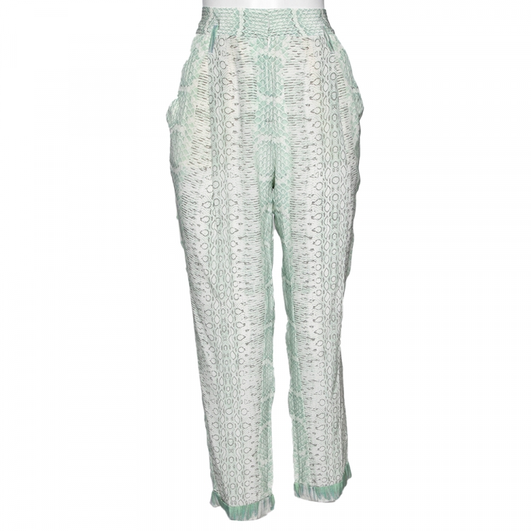 بنطلون روبرتو كافالي جلد ثعبان أخضر مطبوع مقاس متوسط (ميديوم)
