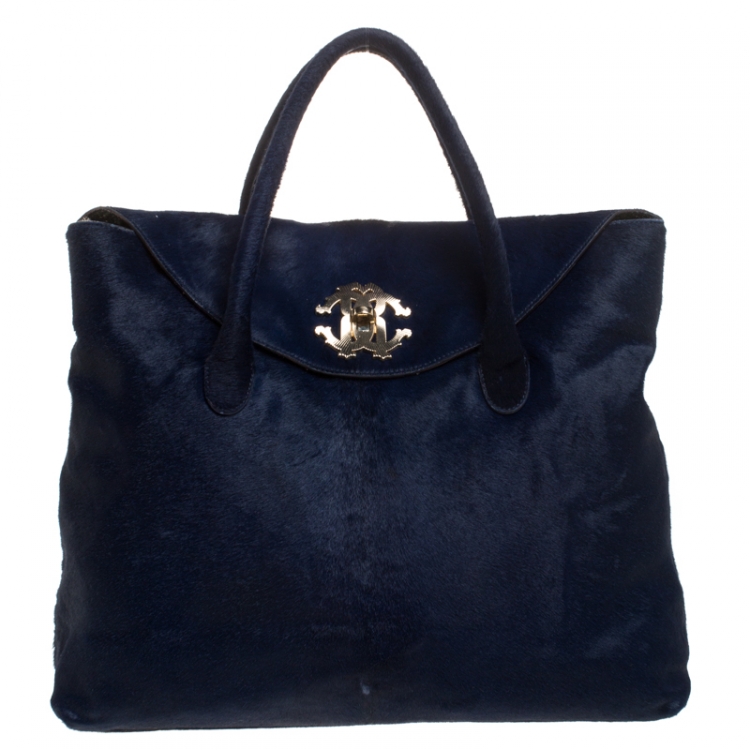 Pre Owned حقيبة روبرتو كافالى شعر مهر كحلية