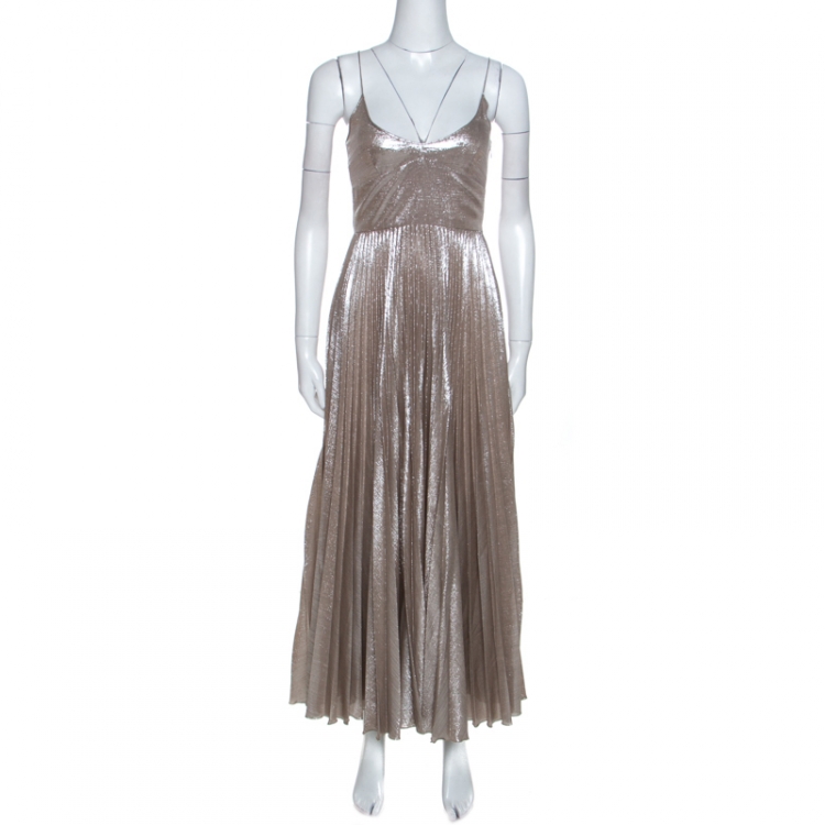 Pre Owned فستان روكاس بلا أكمام طيات خليط حرير مغزول فضي M
