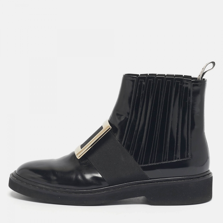 مملوكة مسبقًا حذاء بوت تشيلسي روجرفيفييه جلود أسود لامع إبزيم معدني مقاس 40
