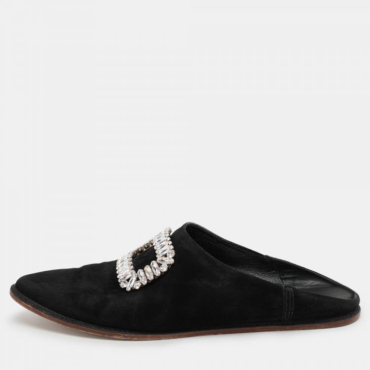 Roger Vivier Black Suede Embellished Mules Size 38.5
